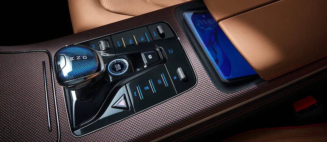 Không gian điều khiển của BYD Han là sự kết hợp hoàn mỹ giữa nghệ thuật chế tác thủ công và công nghệ tương lai. Tâm điểm là cần số pha lê được cắt gọt tinh xảo như một món trang sức xa xỉ, mang lại cảm giác cầm nắm đẳng cấp. Xung quanh là hệ thống phím chức năng được bố trí khoa học trên nền chất liệu vân carbon cao cấp, cho phép chủ nhân làm chủ mọi tính năng vận hành chỉ bằng một chạm.