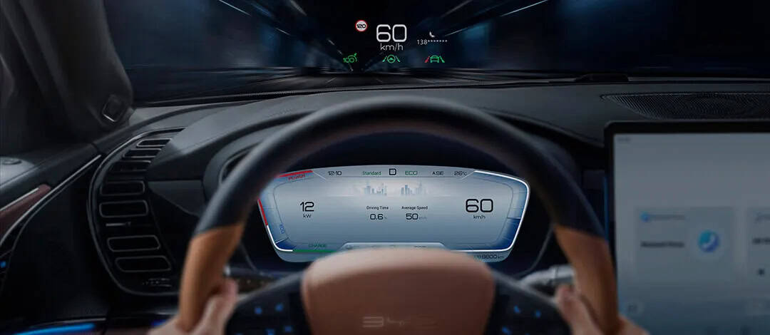 BYD Han nâng tầm tương tác giữa người và xe với hệ thống màn hình hiển thị kính lái W-HUD (Windshield Head-Up Display) hiện đại. Công nghệ này cho phép chiếu trực tiếp các thông số vận hành, chỉ dẫn bản đồ và cảnh báo quan trọng ngay trên kính chắn gió, đúng tầm mắt của người điều khiển. Nhờ khả năng hiển thị trực quan và sắc nét, W-HUD giúp bạn duy trì sự tập trung tối đa vào cung đường phía trước, giảm thiểu thao tác rời mắt khỏi tay lái, từ đó kiến tạo nên những hành trình an toàn và thư thái nhất.